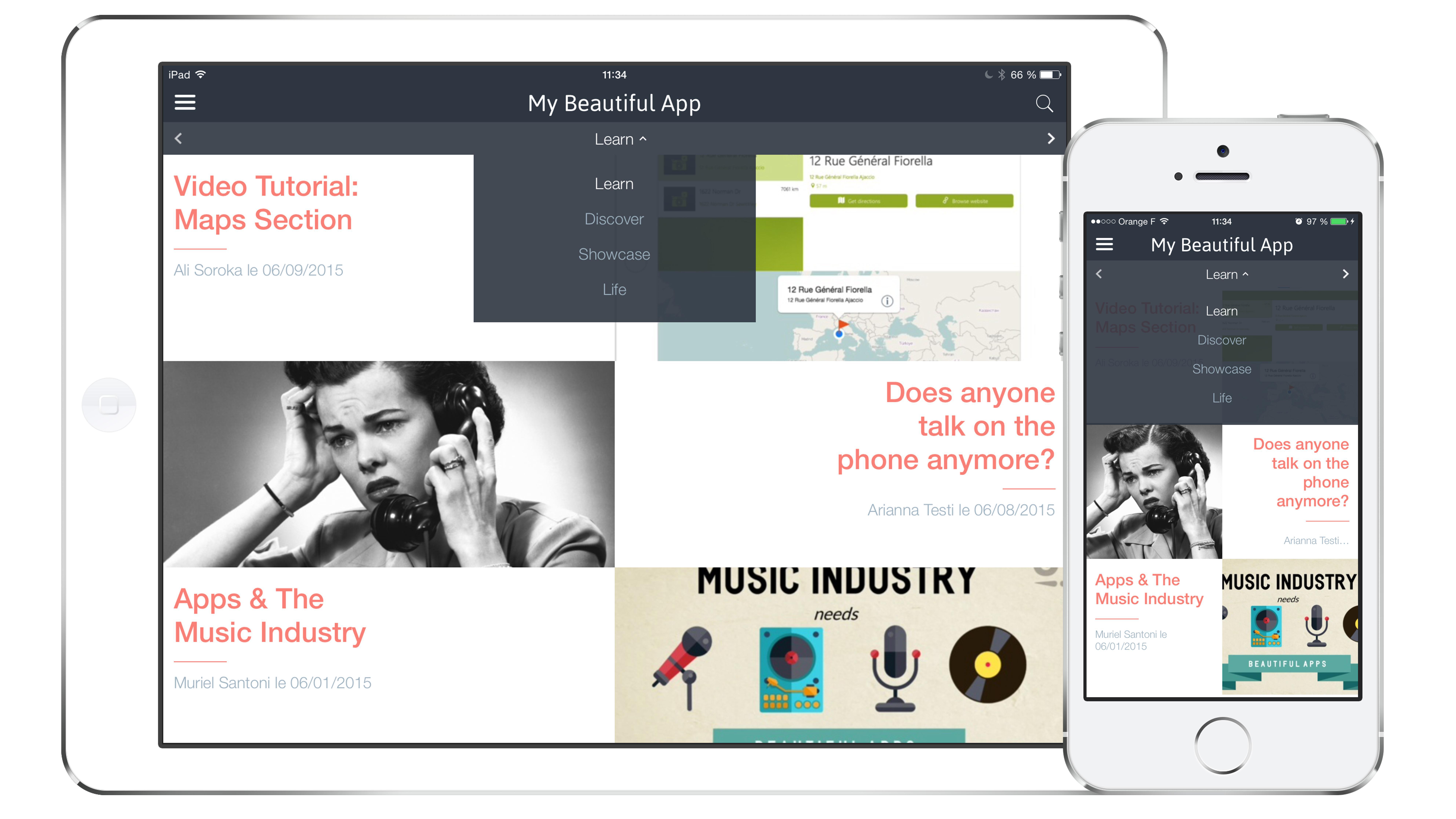 These templates are not available in the My GoodBarber app yet, so if you want to see how they look like on your device, you will have to test with the ad-hoc version. To do this, generate a new version of the app through the menu Publish > Submit > iOS/Android > Generate my app!