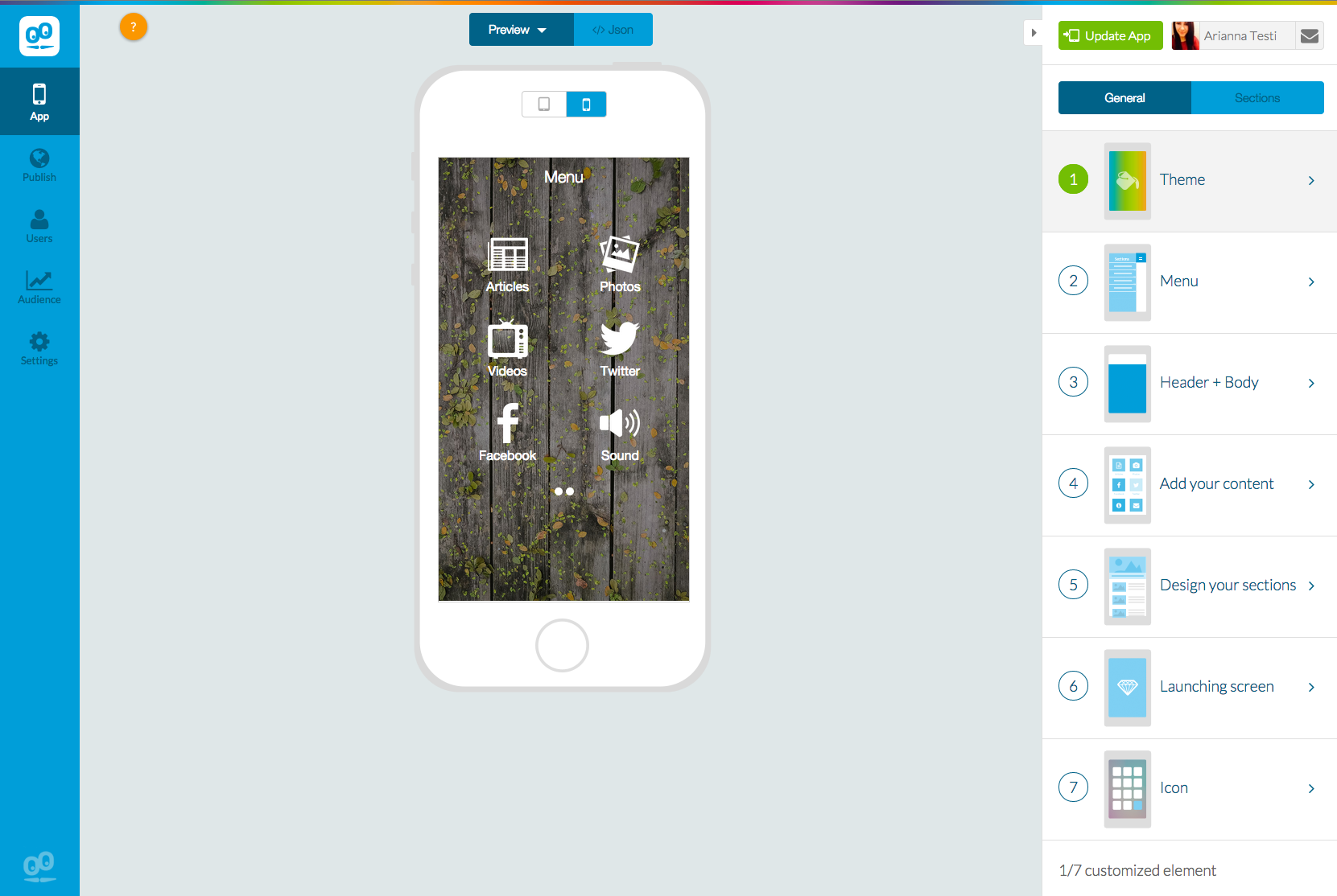 We started by giving the old app building path a makeover—it nows include seven very detailed steps, bringing you all the way to the publication of your app. To supplement the guided creation process, we added in helpful tooltips throughout the platform (that you can choose to deactivate any time) and reorganized the menu displays, providing an overall more natural flow to the backend.