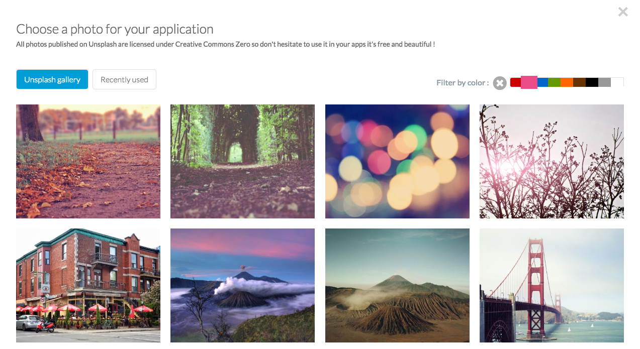 Now comes the fun part: the new design options! Thanks to our friends at Unsplash , we have been able to add a huge gallery full of gorgeous, original images, all available for your enjoyment and use! We have also included new filter options to spruce up your images (a black and white filter as well as a blur filter), updated templates, and chance for further, more precise customization than before.